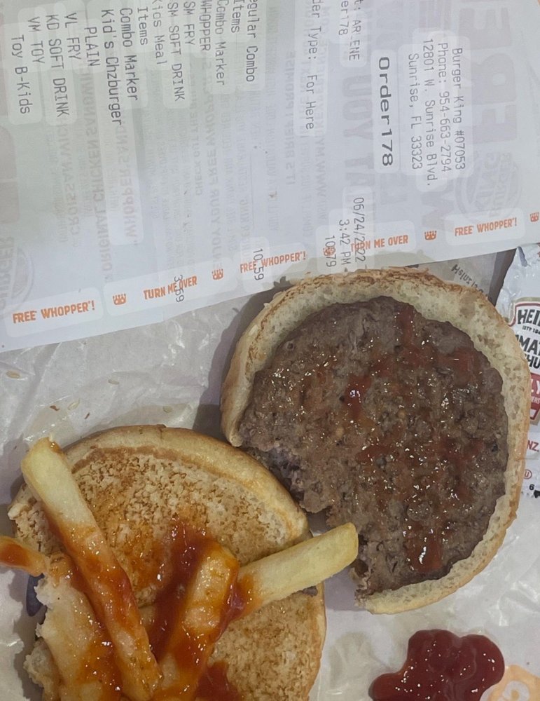 A flame-grilled beef patty topped with melted American cheese, served with your choice of kids meal side and juice drink or value size drink.